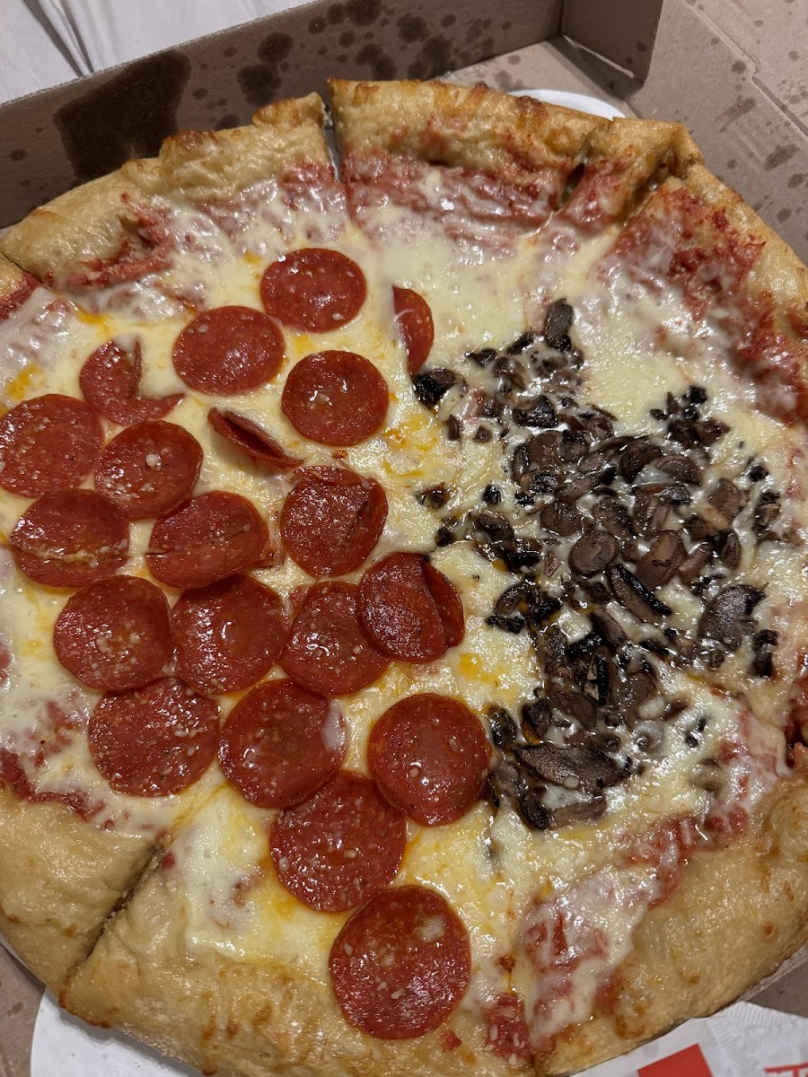 Really enjoyed the half and half pizza. Got the Maui wowie and Mel Calerone. Both for local specialties. The crust is always exceptional and very soft. All the ingredients were fresh. Our waitress was kind and apologized that it was taking a bit but it wasn't an issue because they were fairly busy. Great atmosphere and great place for a wonderful pizza. Only reason I removed one star is because I do believe the pizza is great but it was close to $30 for the large. So unfortunately I don't get to go as often as I would like to. In my opinion 22 to $23 is the top out price here